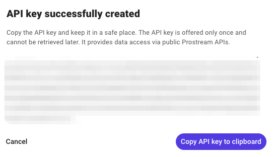 To create a new key, click on Create API key. Give the API key a recognizable name and possibly an expiration date. The API key will then be displayed. Copy it and store it in a safe place.
