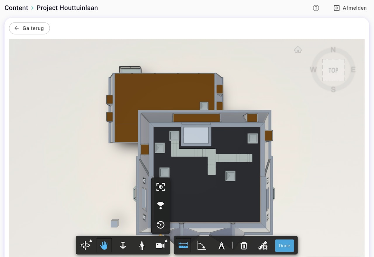 To open the viewer, click on the 3D cube in the window. There you can do all kinds of things, such as measuring distances, creating cross-sections, viewing metadata and much more.