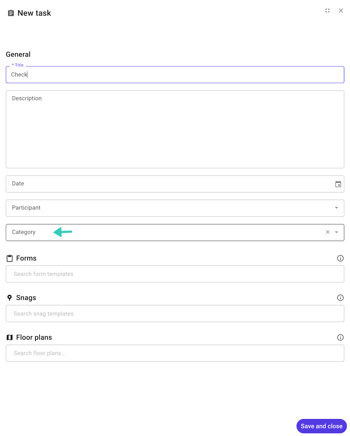 To apply the task category, select it when creating a new task.
