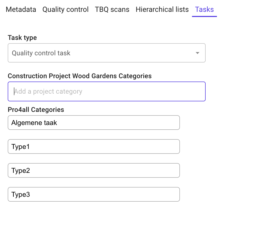 You can create task categories on two different levels: organizational or project level. The categories you create at organizational level are also reflected in your organization's projects.