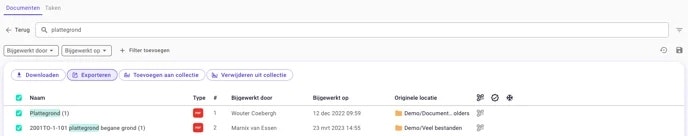 Zoekresultaten exporteren als CSV, documenten- of tekeningenlijst